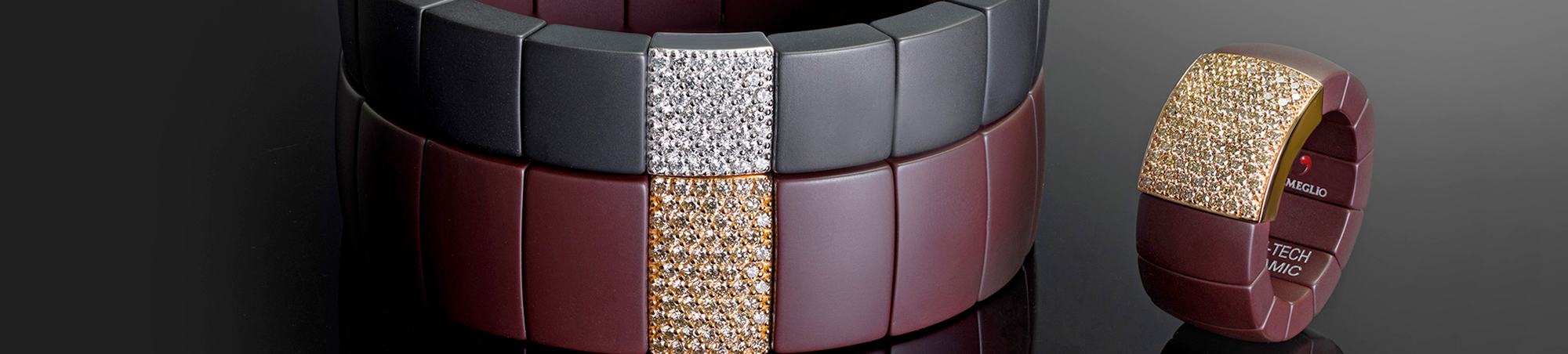 Domino "luce" black matte ceramic rectangle bracelet with 5 white diamonds white gold elemtens